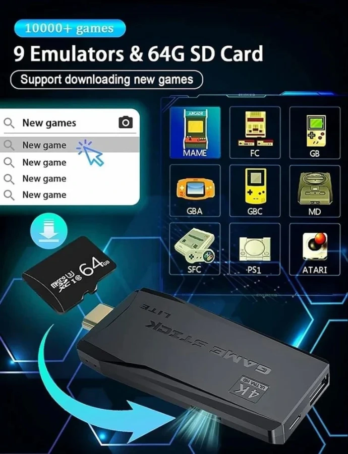 4K Ultra HD game stick. Wireless plug & play retro gaming instantly.